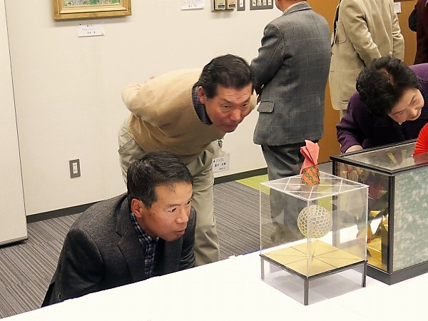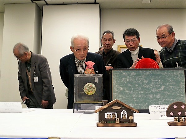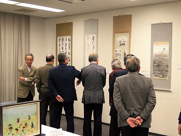 今年の会員有志の作品展は別室に展示をおこない、工芸・墨彩・水墨画・日本画・洋画・写詩・手芸・書など18会員様・23作品の力作を多くの御出席の皆様が鑑賞しました。