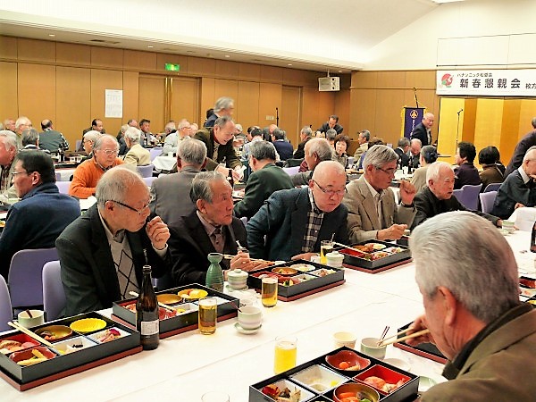 懇親会は、黒田地区委員の司会で始まり、櫻田支部長は挨拶で『昨年は多くの行事と友愛訪問、同好会訪問を含めた活動等に取り組んで参りました。国内外に目を向けますと大きな出来事が数多くあり、大きな転換点を経験した一年と感じています。2017年はパナソニック松愛会設立45周年、枚方南支部発足30周年を迎えた記念すべき輝かしい一年となります。