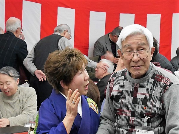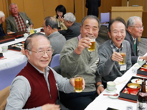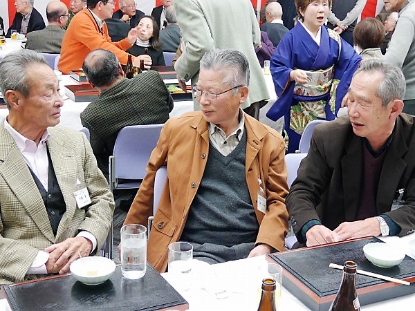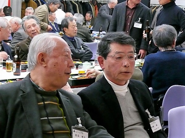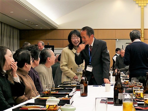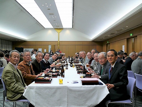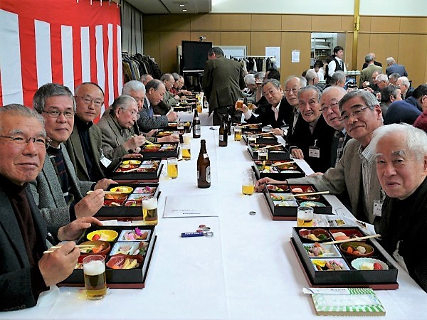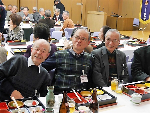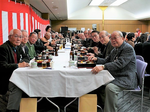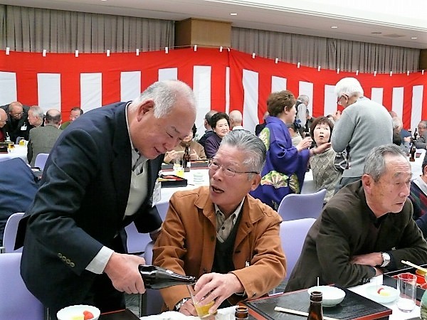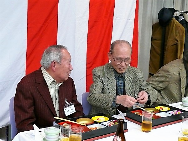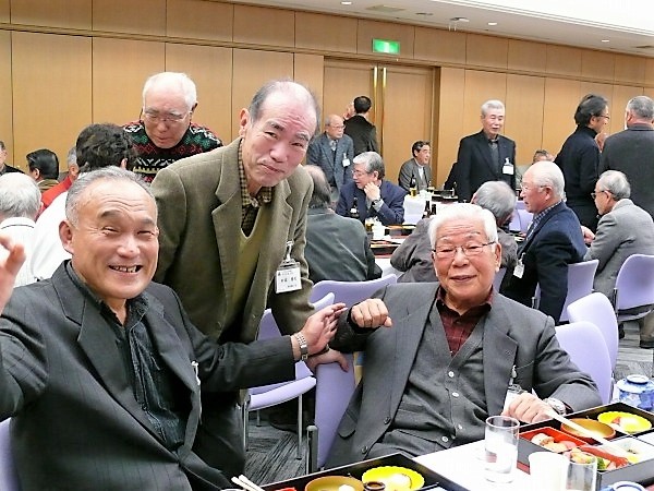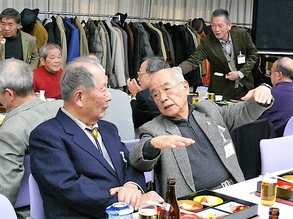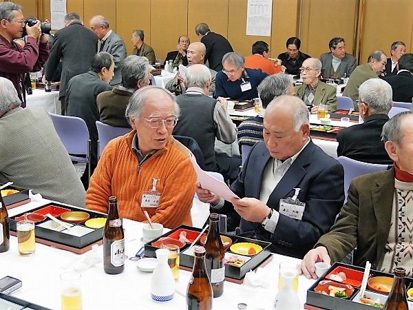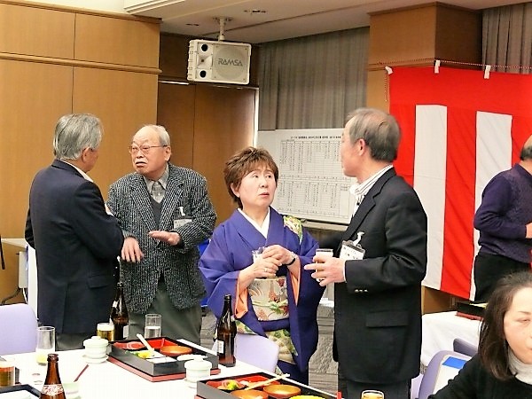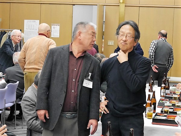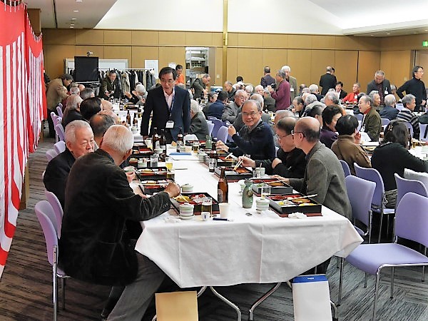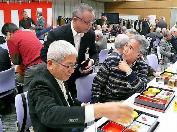 来賓の平野衆議院議員・福留枚方市議会議員のご挨拶、櫻田支部長の乾杯でスタート、会食を挟んで懐かしい現役のころの話や近況の歓談の輪があちこちにでき、懇親会は大いに盛り上がりました。その後、毎年恒例の福引抽選会では9名の会員に幸運が当たりました。最後に、今年84歳になる年男の1班の三好郁男さんの中締めで皆様のご健勝とご多幸、パナソニック松愛会の発展を祈念し、”三々七拍子”でお開きとなりました。帰りはお土産に老舗“福壽堂秀信”の紅白薯蕷饅頭をお渡し致しました。来年も皆様の参加をお待ち申し上げております。