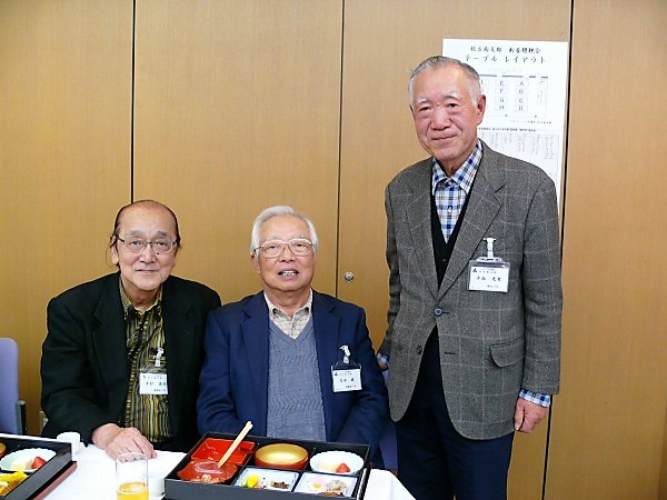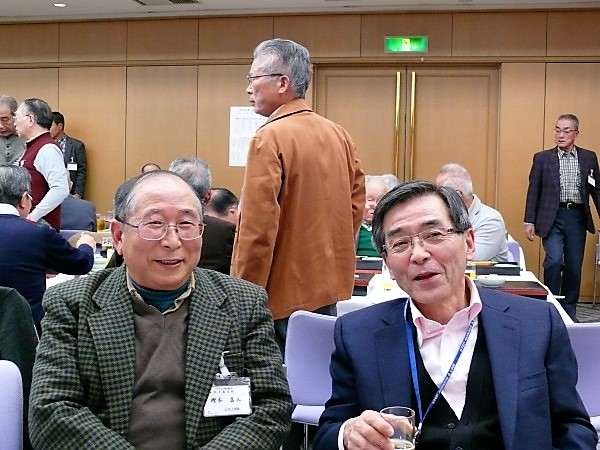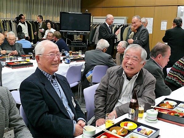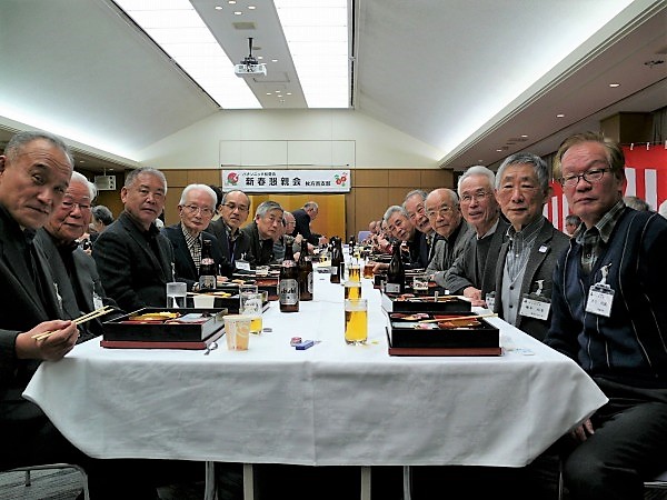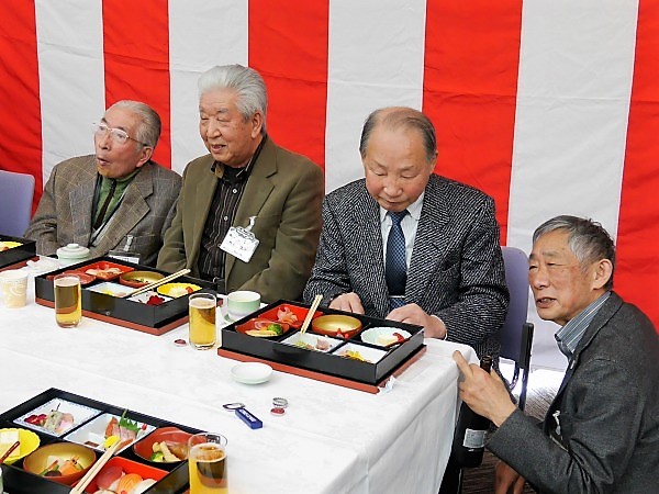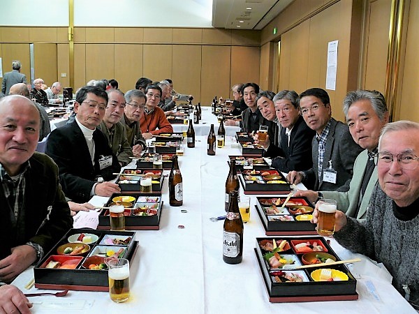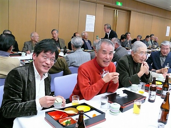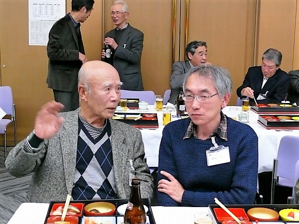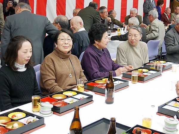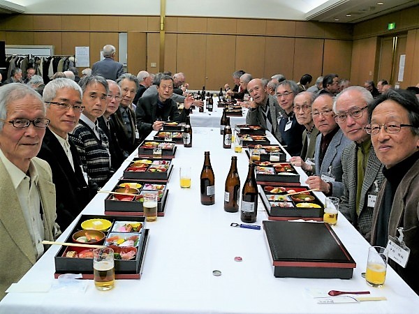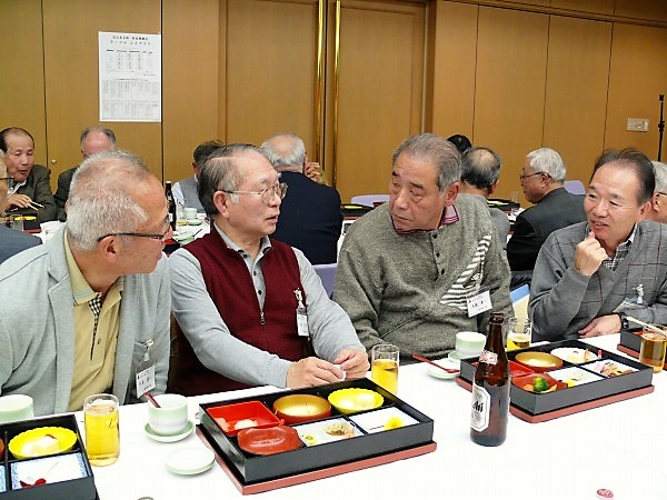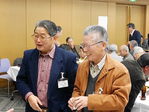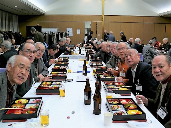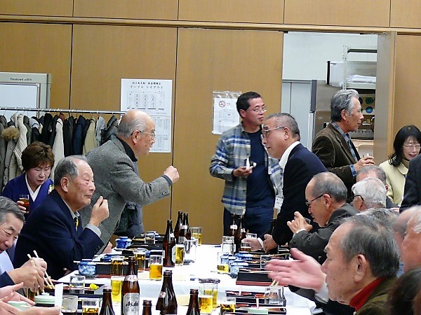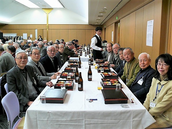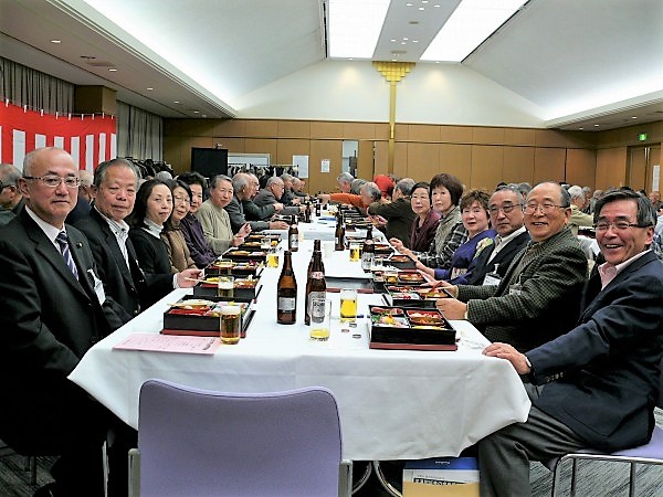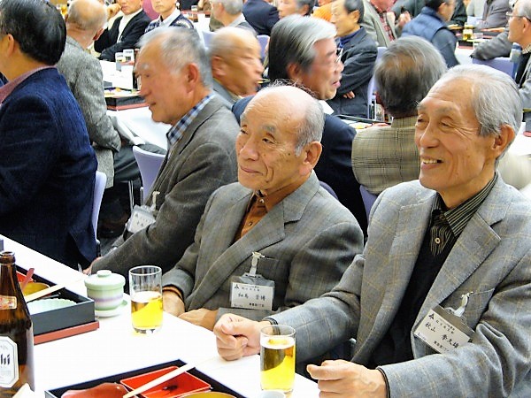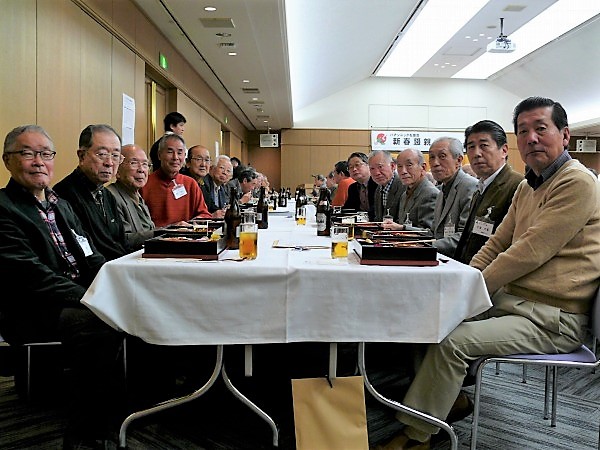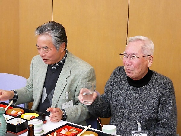 来賓の平野衆議院議員・福留枚方市議会議員のご挨拶、櫻田支部長の乾杯でスタート、会食を挟んで懐かしい現役のころの話や近況の歓談の輪があちこちにでき、懇親会は大いに盛り上がりました。その後、毎年恒例の福引抽選会では9名の会員に幸運が当たりました。最後に、今年84歳になる年男の1班の三好郁男さんの中締めで皆様のご健勝とご多幸、パナソニック松愛会の発展を祈念し、”三々七拍子”でお開きとなりました。帰りはお土産に老舗“福壽堂秀信”の紅白薯蕷饅頭をお渡し致しました。来年も皆様の参加をお待ち申し上げております。