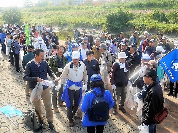 先ず、枚方市天の川再生実行委員会・大阪府枚方土木事務所など主催者から「ゴミを捨てさせない環境づくりの重要性」や「天の川の良さを知って欲しい」旨の挨拶がありました。次に、伏見市長の挨拶(代読)、清掃作業の注意事項の説明がありました。