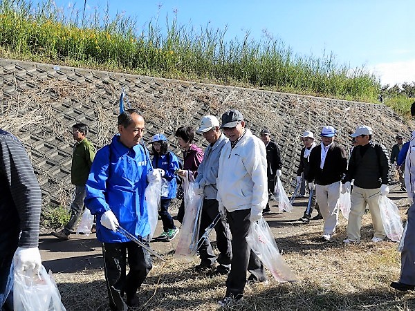 スタートはゴミも少なくウォーキングを楽しんでいましたが、その後川べりや土手の上の草むらで流木やガラス破片・ビニールなどが見つかりました。特に捨てられた自転車もありビックリ!!昨年同様、ゴミは少なく晴天の中、ウォーキングを楽しむことができました。