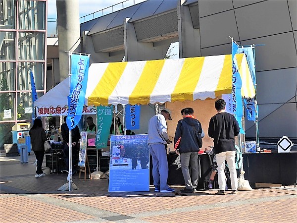 その後、枚方市駅へ向かう途中のラポール枚方では「よどがわ防災まつり」も開催されていました。また、岡東中央公園では「ひらかた菊花展」(~12日)が開催中でした。