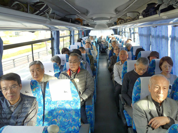 帰路の伊勢道⇒新名神は渋滞もなく、往路と同じ「土山SA」にて土産休憩。16時30分にSAを出発し、京治バイパス⇒第二京阪を快走、第二京阪を出てから少し渋滞したが、18時に出発地のラポール枚方に無事到着。立冬は既に過ぎており到着時は暗かったが、怪我や事故もなく予定通り楽しく行事を実現。ご参加頂いた会員の皆様・支部世話役各位・バス会社の方々に、深甚の謝意を申し上げたい。