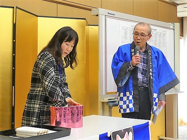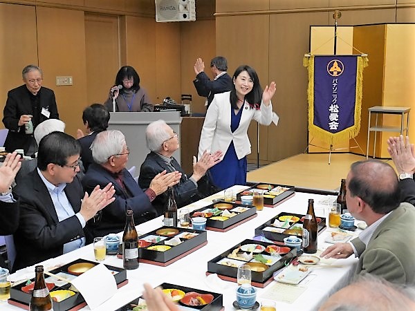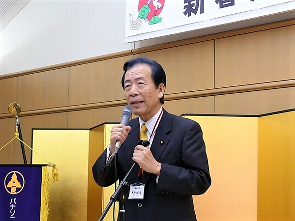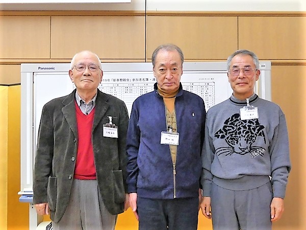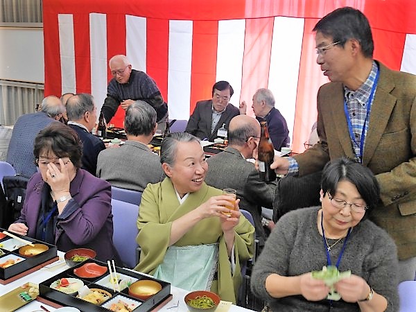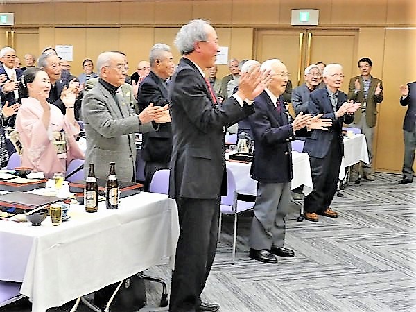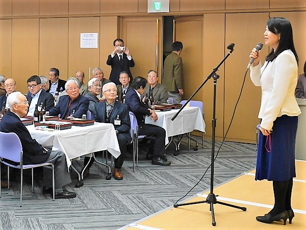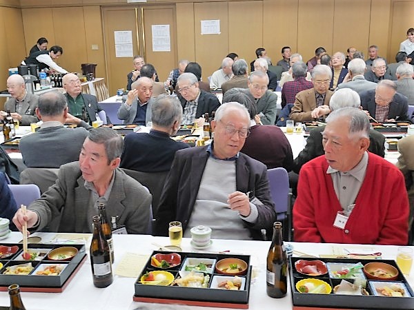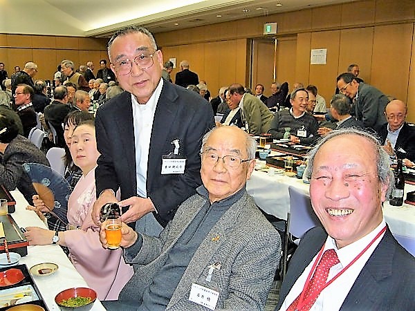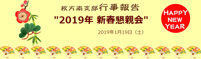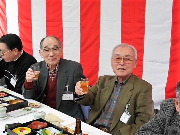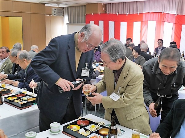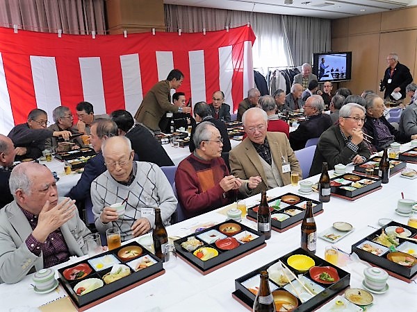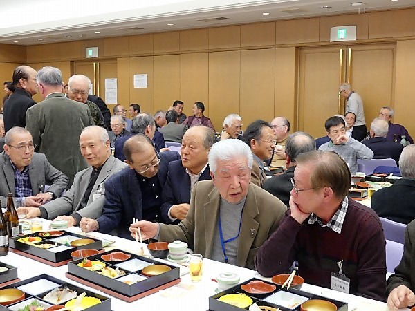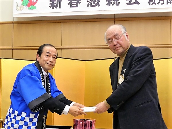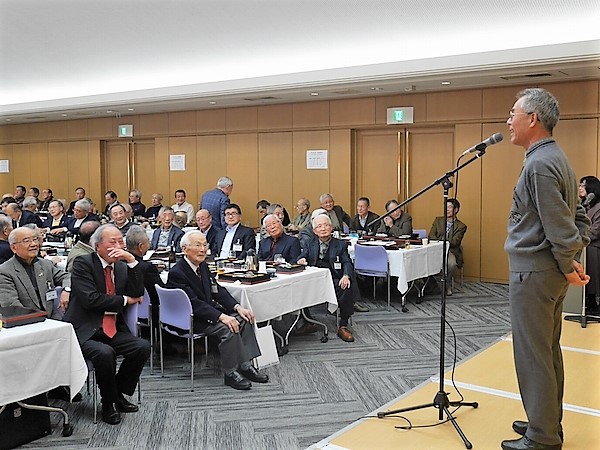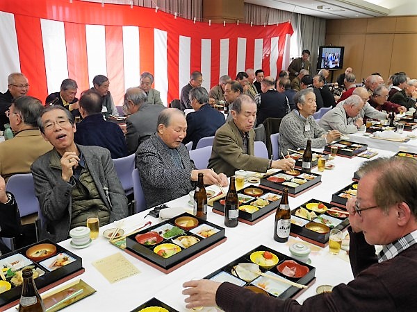 その為にも、松愛会では「ボーっと生きてんじゃねえよ!」と、あのチコちゃんに叱られない様、スローガン「仲間と地域、笑顔で健康」を合言葉に、次のステージに向かってしっかりと準備して、新たな行事の実現と、皆様方との信頼の絆を深め、努力して参りますので宜しくお願い申し上げます。 最後に、今回は平成最後の新春懇親会です。5月には「元号」が変わり、大きな節目の年、時代の変化を感じさせる年になると思います。そして今年はラグビーワールドカップ、来年は2020東京オリンピック/パラリンピック、2025大阪万博、2027リニア新幹線等ビッグイベントが続きますが、今後ともお元気でご活躍されます事を祈念申し上げ、ご挨拶とさせていただきます。』と今年の活動の決意を語られました。