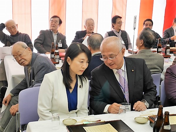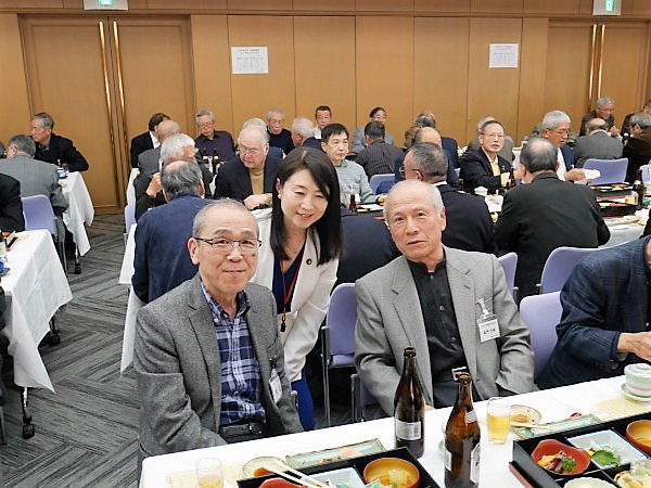 来賓の矢田参議院議員・福留枚方市議会議員のご挨拶、松愛会の上田会長の乾杯でスタート、会食を挟んで懐かしい現役のころの話や近況の歓談の輪があちこちにでき、懇親会は大いに盛り上がりました。他支部にも顔を出されるとの事で、矢田参議院議員は中座され、入れ替わりに、平野衆議院議員が入られ、ご挨拶された。その後、毎年恒例の福引抽選会では9名の会員に幸運が当たりました。