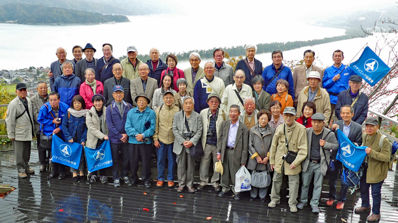 当日はご夫婦11組を含む46名が参加。午前の伊根湾巡りは小雨模様であったが、午後からは雨も上がり、傘松公園からの天橋立の雄大な景観に感激。