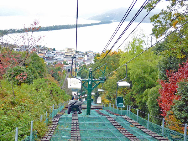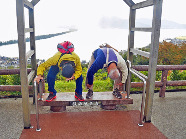 傘松公園へは昼食会場からすぐのケーブルカーあるいはリフトに乗って5分で、日本三大名勝「天橋立・股のぞき」の現場に到着。筆者は3回目の訪問ではあるが、改めて「天橋立」に感激。