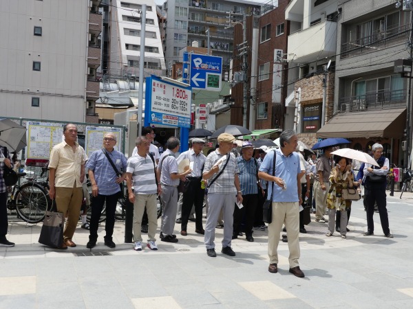 - 暑い日差しの中入場を待つ