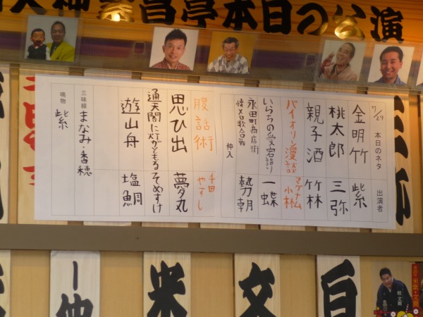 当日は平日にも拘わらず216席の座席の殆どが埋まる程の人気で、程よく空調が効いたなかで笑いの世界へ出発進行。