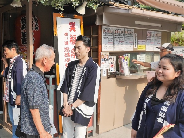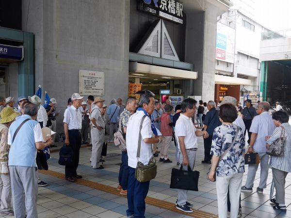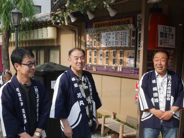 連日の猛暑の中12時に京橋駅広場に集合後、12時7分京橋発の電車で「大阪天満宮」へ移動し、「天満天神繁昌亭」に到着。開場の12:30までは天満宮の参拝、 天神橋商店街の散策、木陰で暑さを凌いだりと各自それぞれの方法で時間を費やしました。