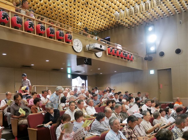 一番太鼓が鳴り、いよいよ入場開始、13時の開演を待ちました。平日にも拘わらず216席の座席の殆どが埋まる程の人気でした。