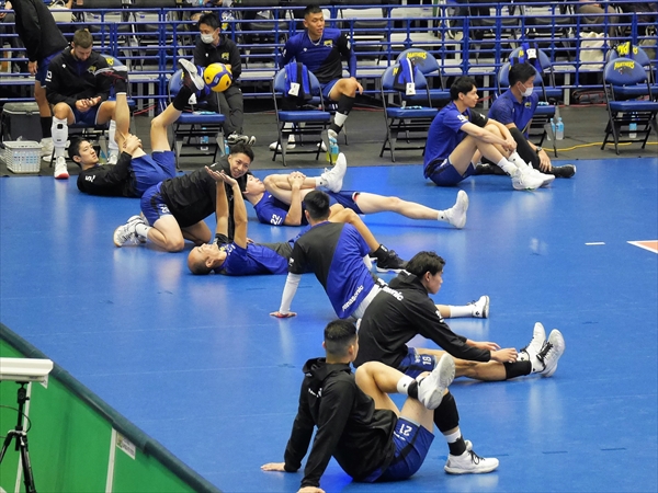 会場に入ると、選手がウォーミングアップを始めていました。