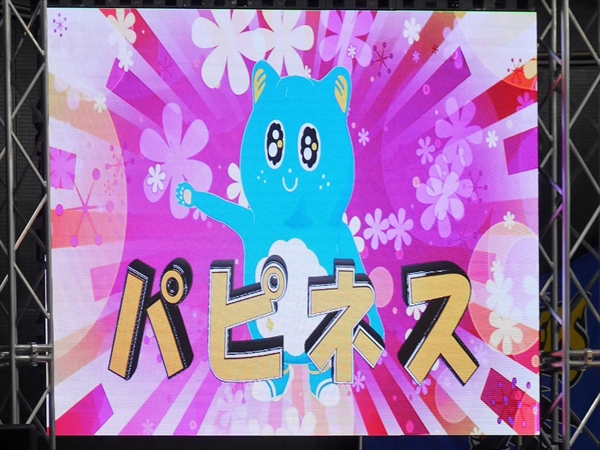 14:00になりましたが、試合はまだ始まりません。開幕戦だけに多くのイベントがあります。最初は、「新キャラクターネーム」の発表!! 名前は【パピネス】です。