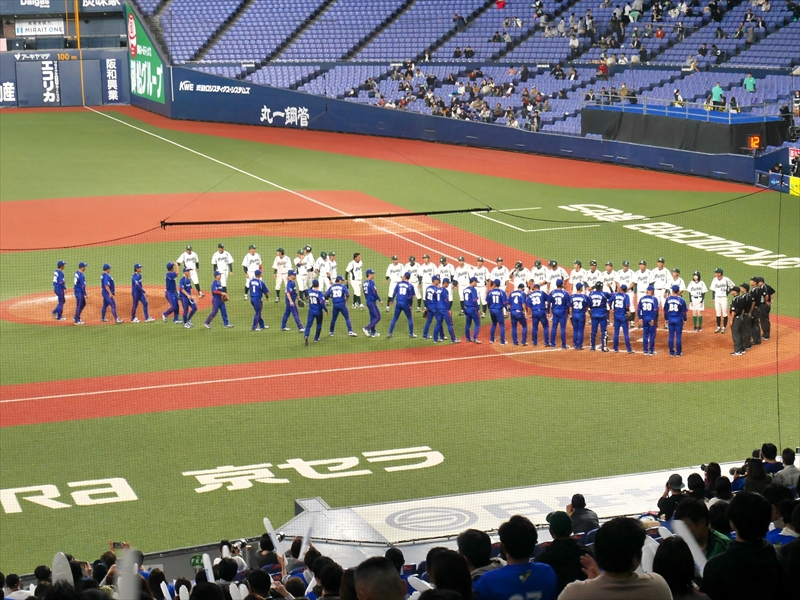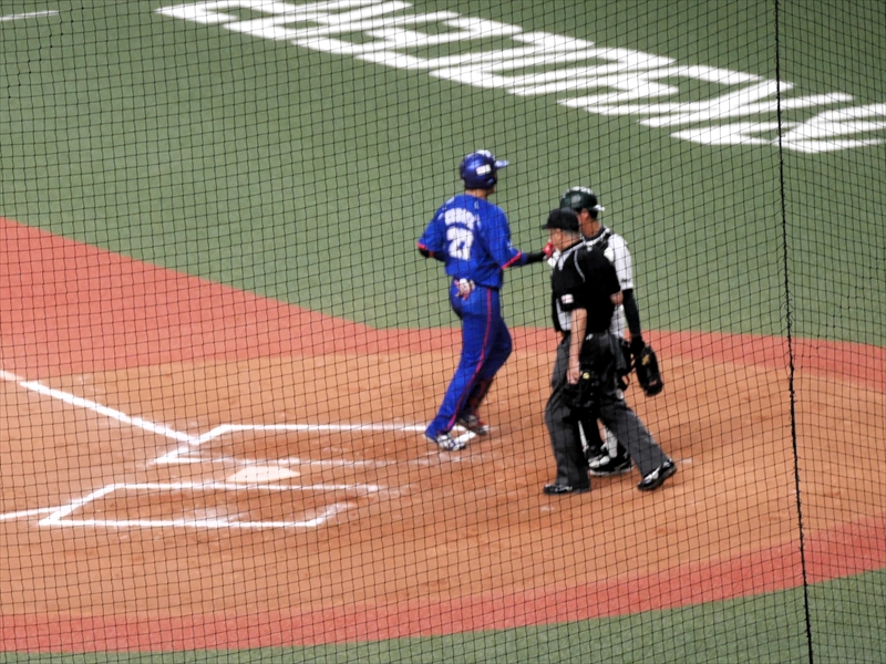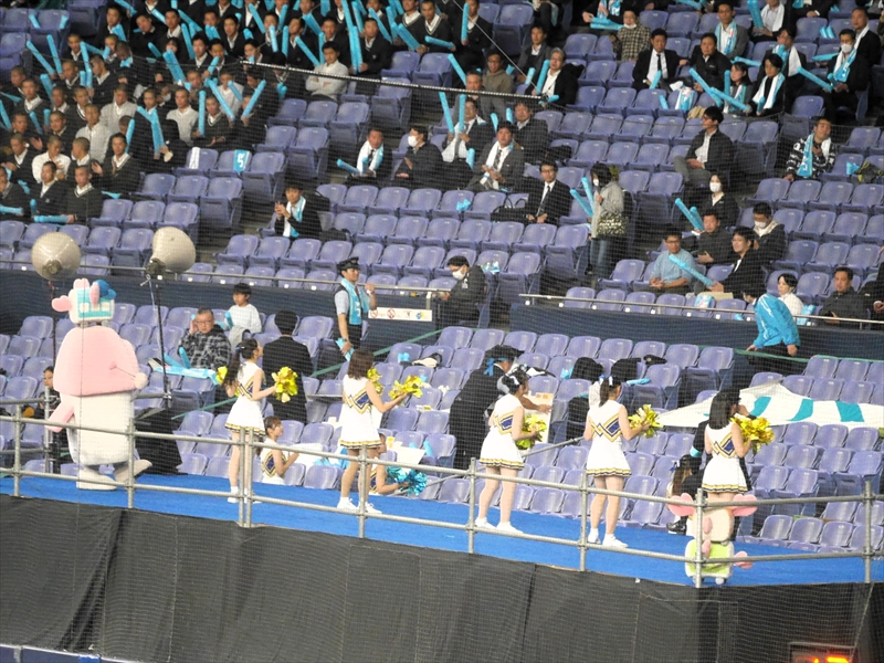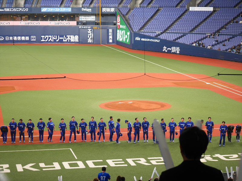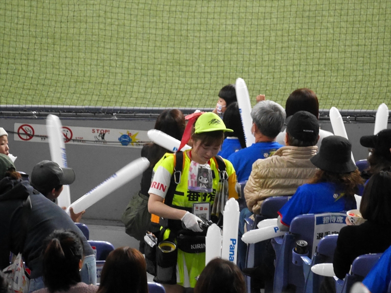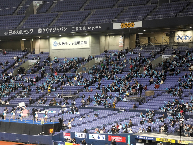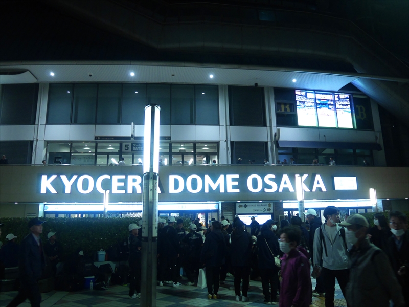 再び、集まると多くの方が「京セラドーム」のまわりに延々と並んでいます。応援グッズ(オリジナルTシャツ&スティックバルーン)をもらい、入場すると試合はもう始まる直前でした。