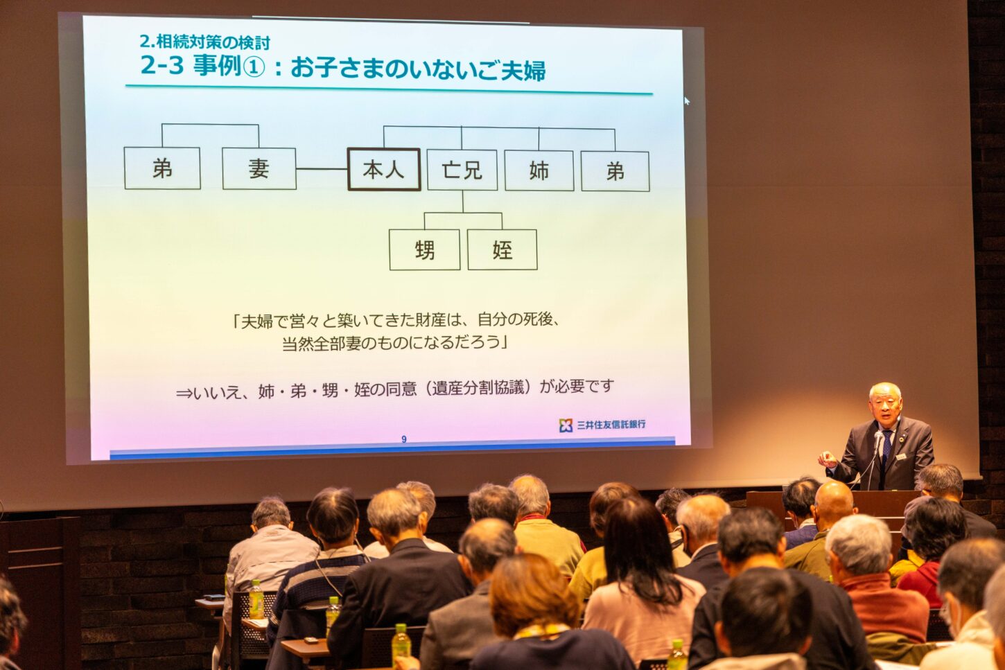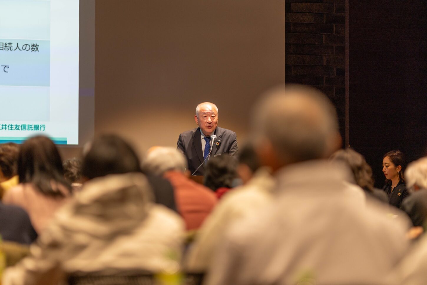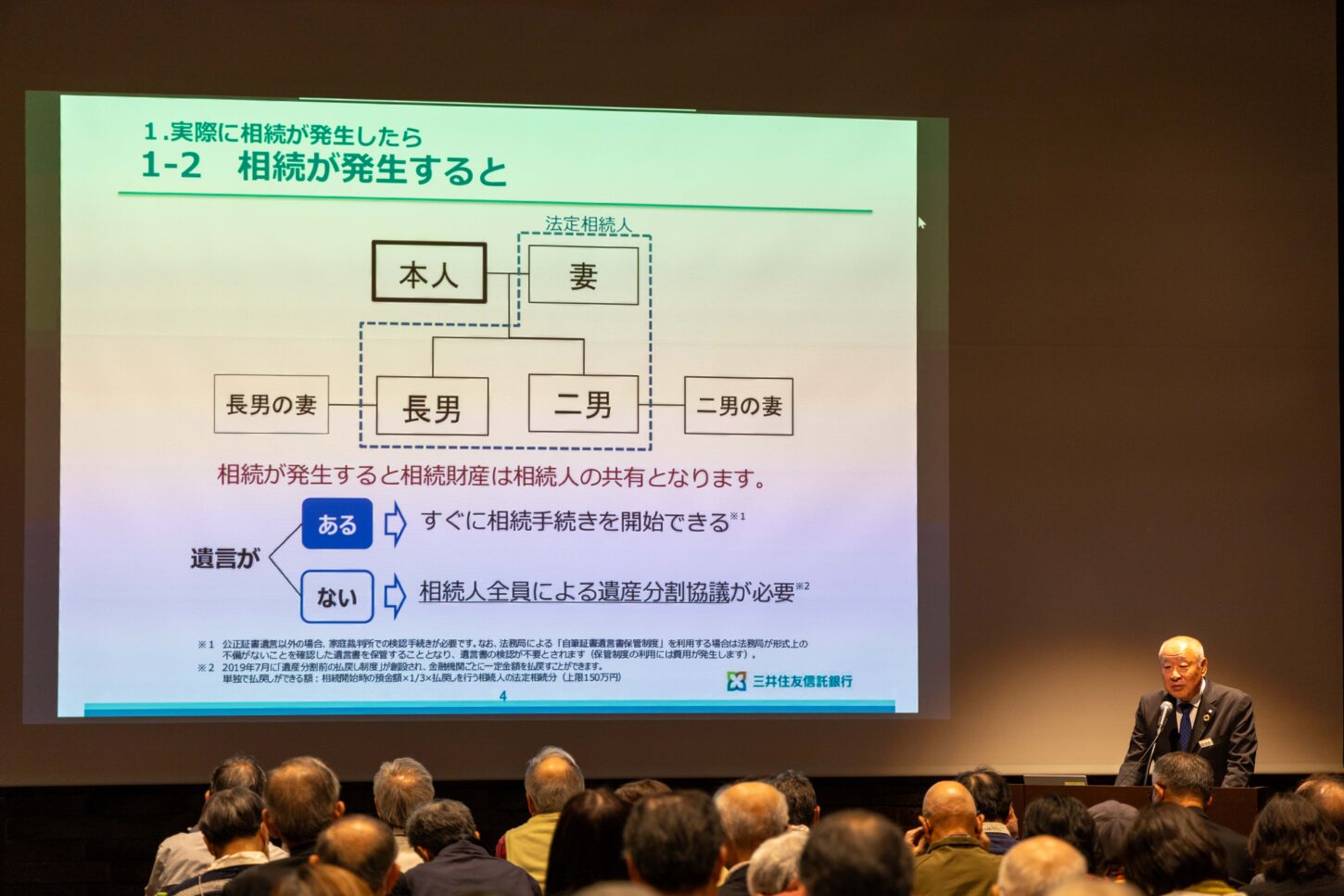 今回は「円滑な相続に向けて」をテーマに、誰もがいずれ直面する相続について学ぶ機会として、4月15日(火)14時30分より「枚方市総合文化芸術センター イベントホール」にて開催し、106名の皆さまにご参加いただきました。