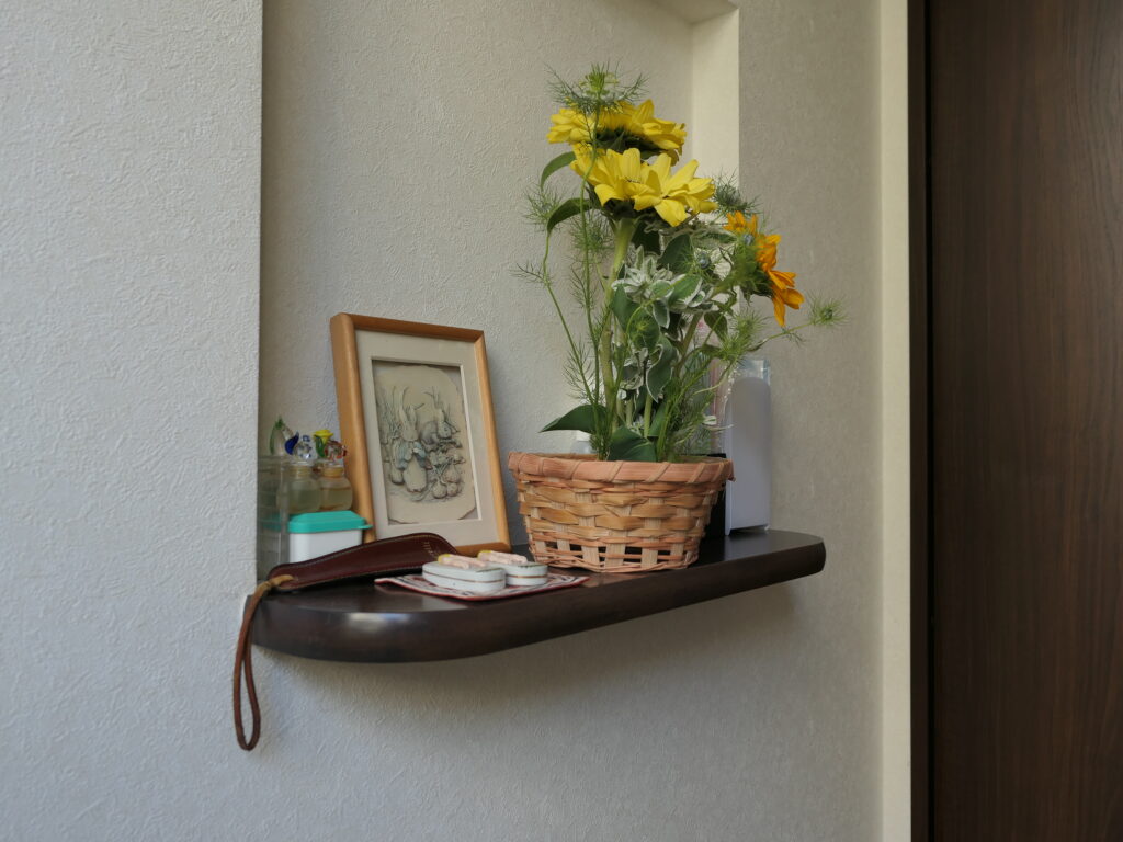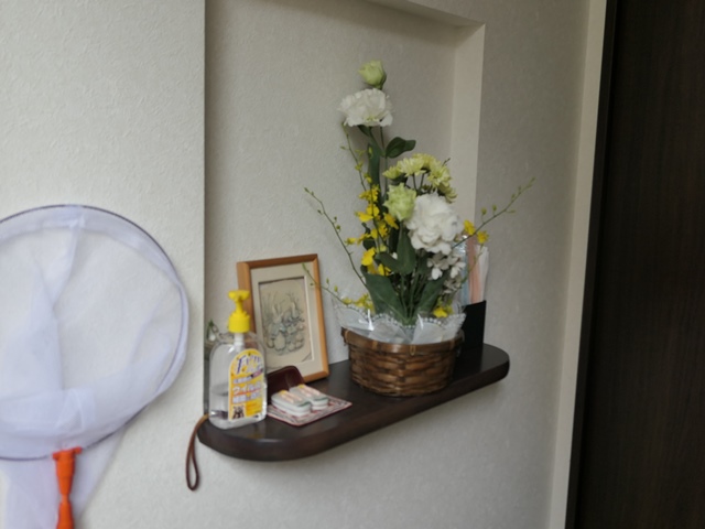 床の花:ヤハズススキ、イブキトラノオ、キキョウ、ナデシコ、ナツメ