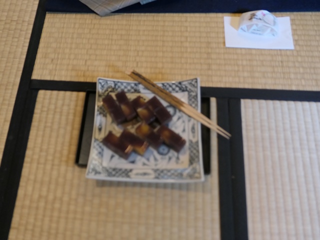 私(HP作成者)は干菓子をボロボロと、敷物の上に落としてしまいました。お菓子は主菓子も干菓子も懐紙にのせたまま、それを手にのせていただきます。割りにくいもの、飛び散りやすいもの、食べにくいものもあります。