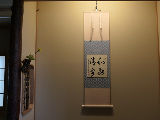 - 掛軸:和敬静寂、左端の箱が煙草盆