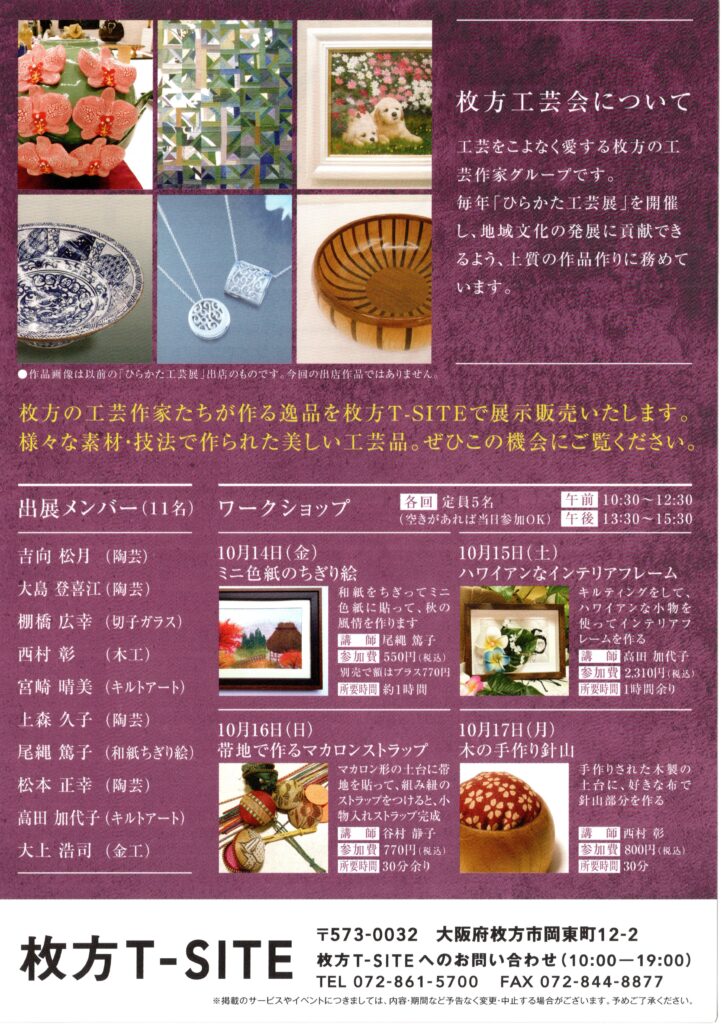 10/14(金)~10/17(月)「枚方工芸会 くらしのアート&クラフト展」が開催されます。