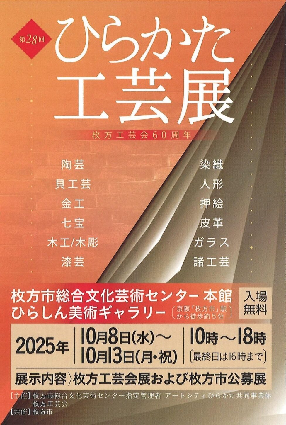 10/ 8(水)~ 13(月・祝)に「ひらかた工芸展」(枚方60周年)が枚方市総合文化芸術センターにて今年も開催されます。今年もテーマは「風景との出会い」です。