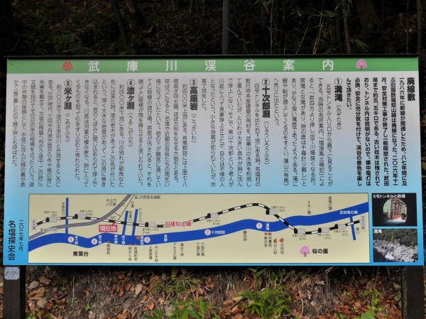 - 廃線跡入口の景勝地案内