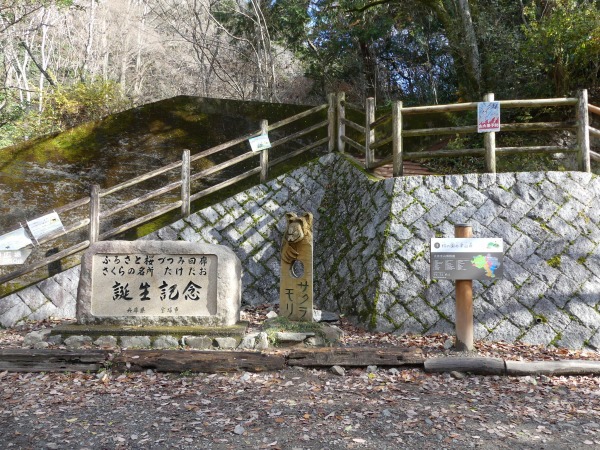 武庫川渓谷の左岸側から廃線跡へのスタートです。少し歩くと武庫川渓谷の流れが見えてきます。このあたりには、落石注意、事故は自己責任、クマに注意などの看板が見られます。