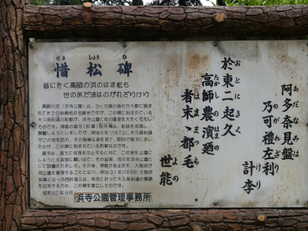 ⇒ 水練学校 ⇒ 与謝野晶子歌碑 ⇒惜松碑 ⇒阪堺軌道 浜寺公園駅 ⇒南海 浜寺公園駅