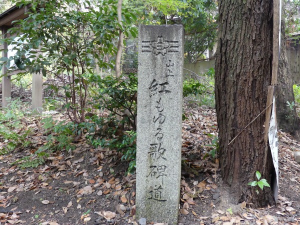 約20分で山頂休憩所に到着です。ここに旧制第三高等学校(現・京都大学)の寮歌「紅もゆる」の歌碑が立っています。 山頂は都市公園として整備されており、大文字山(如意ヶ嶽)が一望できます。こんなにまじかに見えるなんて感動です。