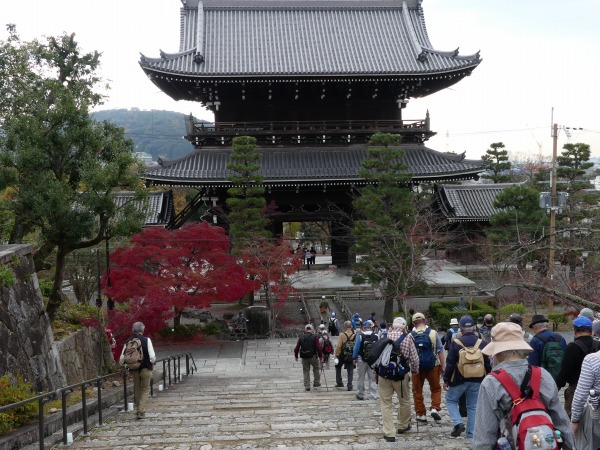 感動をお土産に下山します。途中、吉田山緑地に10分ほどで到着します。少しお昼には早いですが、昼食休憩です。昼食後に真如堂に向けて出発です。