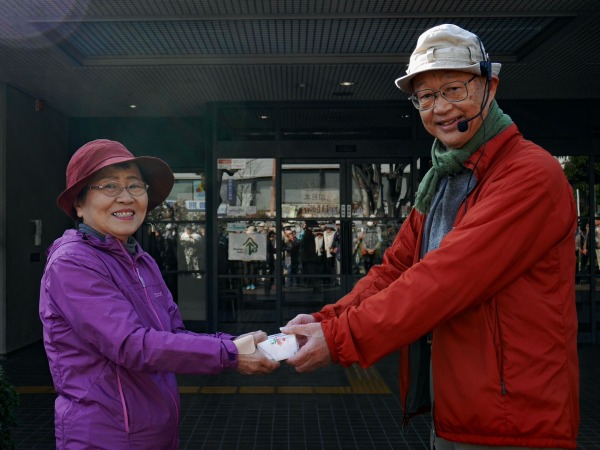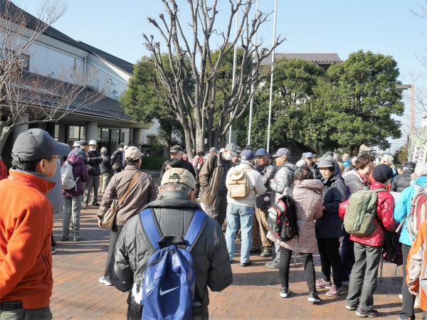 今回の集合場所は、京阪の丹波橋駅西口を下りてすぐの「京都市呉竹文化センター」に139名の仲間が集いました。 10時過ぎに朝会が始まりました。山内会長のあいさつの後、200回参加の塚本さん(北)を含め4名の方の表彰、2名の新入会員の紹介、 次に葛城リーダーからコースの案内説明、進藤さんから次回例会案内・2018年度の会計報告、最後に2019年度の世話役の紹介と続きました。 いよいよ、「御香宮神社」(ごこうのみやじんじゃ、ごこうぐうじんじゃ)に向けて出発です。