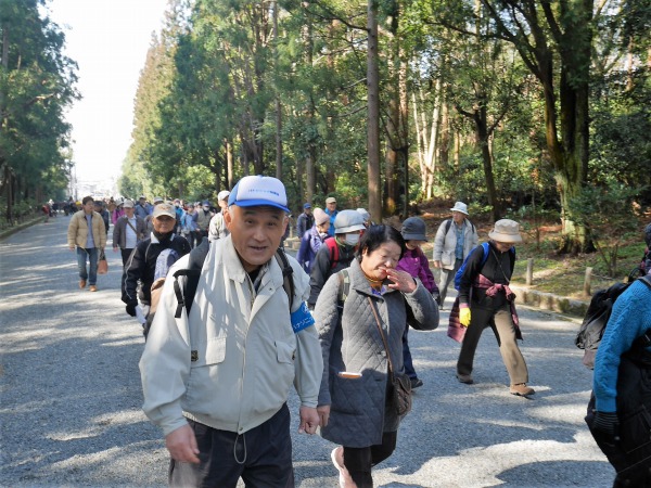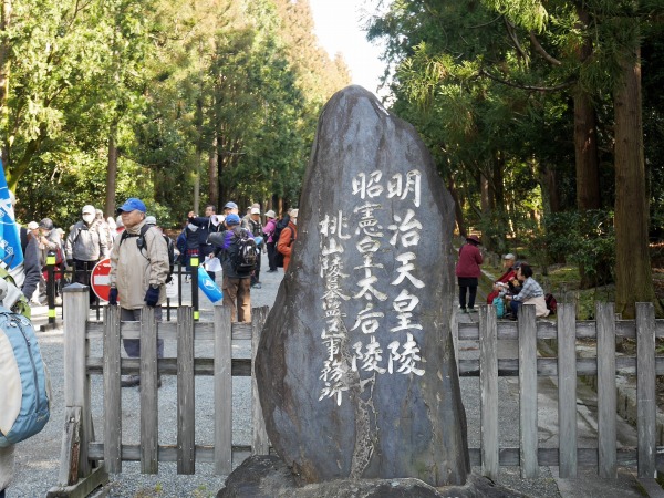 「御香宮神社」を出発し、しばらく歩くと「伏見桃山陵」の入り口に到着です。時間調整のため休憩となりました。 ここからは、上り坂になるので、体力に自信のない方はここでお待ちいただくことになりました。