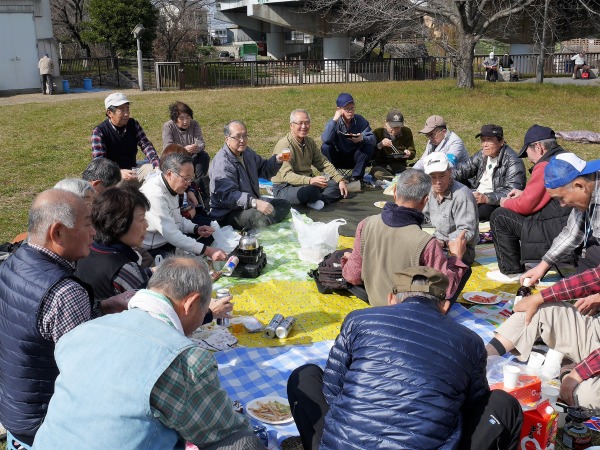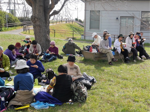 「伏見港公園」横の「伏見港みなと広場」で昼食です。