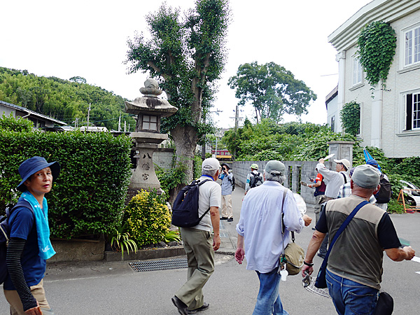 八幡神社参道の印である石の常夜灯があり大谷川を渡る。橋本橋がある川沿いに行き、下見では橋本の街の中を歩く予定であったが、先頭のリーダの選択ミスで橋本駅東側の丘陵地帯を登ることになってしまった。