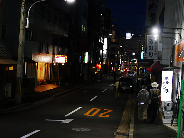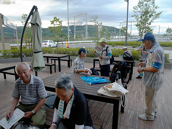やがてネオンが輝き出す頃、見慣れたくずはモールが見えて、本日のゴールとなり京阪樟葉駅で解散となった。全長約5.2キロメートルの行程が納涼「たそがれウォーク」として初例会の爽やかなコースになった。