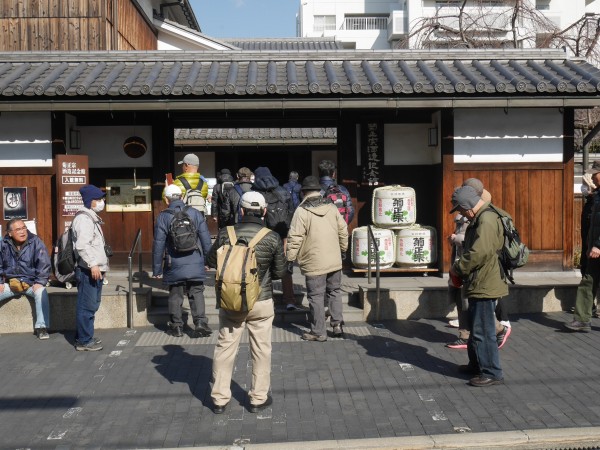 お店の方はお勧め上手で、試飲を何杯もお替りする方も見られました。「沢の鶴資料館」を出て阪神電車・大石駅へ向かい、15時過ぎに解散しました。参加された皆様、新型コロナウイルスが心配される中、お疲れさまでした。来月の青谷梅林(観梅)もよろしくお願いします。