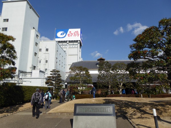 約15分程度で「白鶴酒造」に到着しました。「白鶴酒造」は1743年創業で伝統を重んじつつ、新技術・設備の導入を積極的に行っているそうです。「白鶴酒造資料館」では、酒造り工程の展示を見ました。