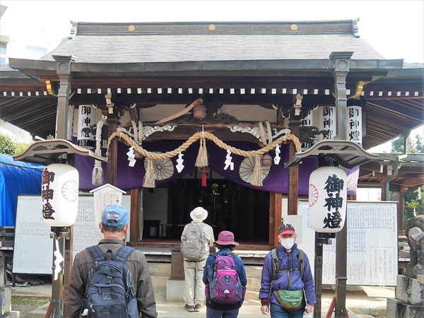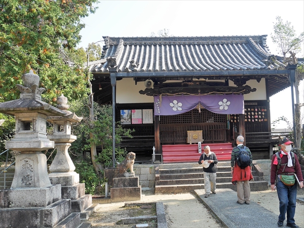 予定時間に、11名で出発です。改札口から、フレスト香里園(12/31閉店予定)側へ向かい、『かおりまちテラス』まで来て相談の結果、今回はここを集合場所とすることに決定しました。「歯科医」の右側を進み、石段を上る。教会を右折し「友呂岐神社」へ向かい、「友呂岐神社」で給水休憩です。さらに進み「成田山不動尊」へ向かいます。
