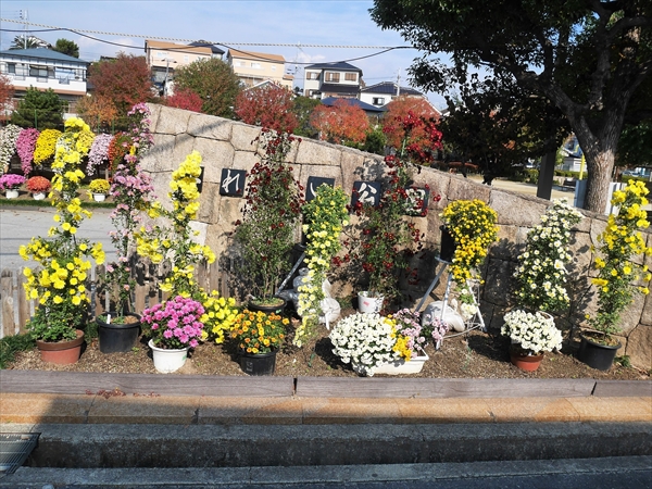 「翠香園ふれあい公園」に到着です。入り口には、菊(懸崖)が並んでおり、紅葉もきれいでした。