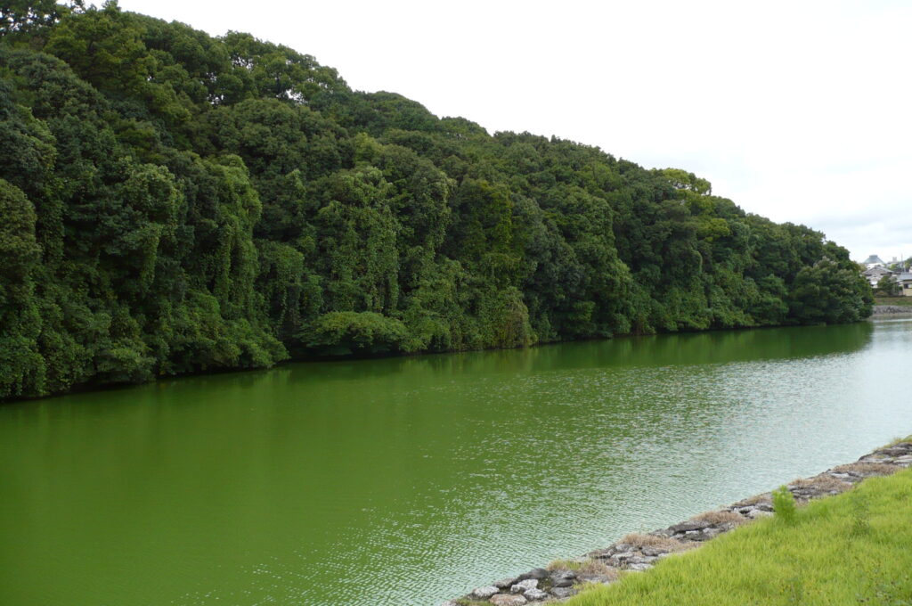 古市古墳群とは、大阪府の東南部、藤井寺市から羽曳野市にかけて東西4㎞、南北4㎞の範囲で分布する古墳群です。古市駅から最も近い白鳥陵古墳に向かいます。白鳥陵(はくちょうりょう)古墳は古墳群の南部に築造された墳丘長200mの前方後円墳で、くびれ部北側に造出し(つくりだし)があります。前方部の幅が後円部の直径を上回り、墳丘の高さも前方部が3m高いという特徴があります。(古市古墳群ウォーキングマップより引用)