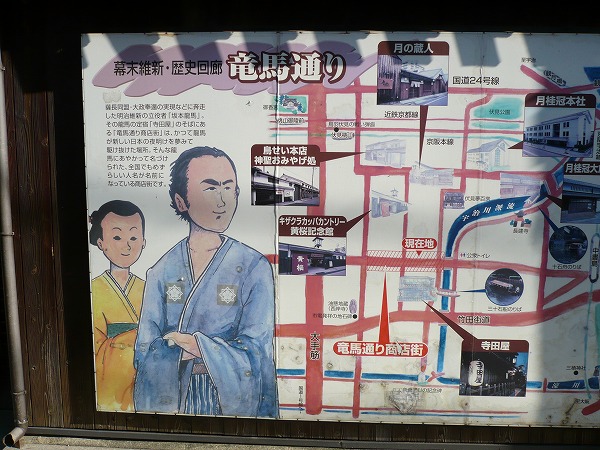 昼食の後、黄桜酒造へは昨年は左側の道を行ったので、今年は右側を行きました。左右すぐに合流しました。坂本龍馬像の所で階段を上がり、黄桜酒造を目指しましたが。道が解らなくなり少しうろたえました。出会った方にお聞きして、無事黄桜酒造に入り林さんは買い物を行いました。昨年同様、過去の黄桜酒造テレビコマーシャル見て、懐かしく感じました。