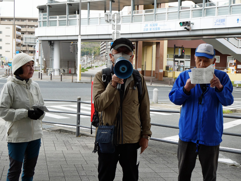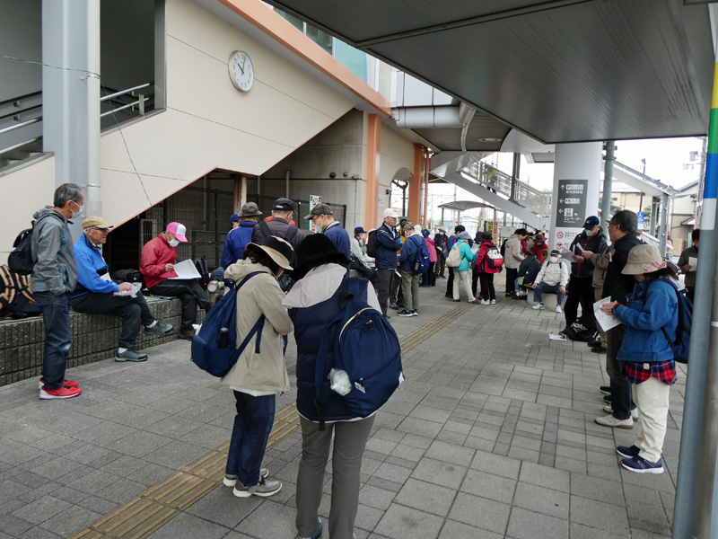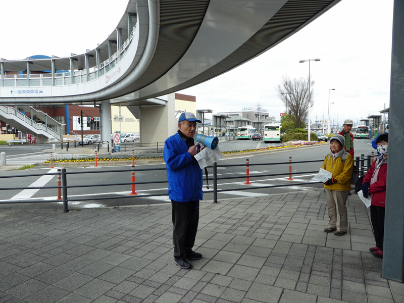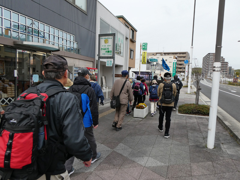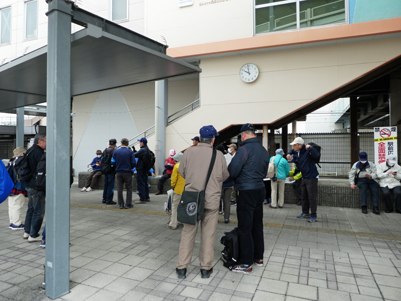 当日は、天気が曇り時々晴れの状態で、雨の心配はいりませんでしたが、少し寒い感じで花見にはもう少し暖かい方が良いと感じながらJR祝園駅の高架下の集合場所に少し早めに到着しました。皆さんに「コンビニ」は駅前にはありませんが、それに代わるスーパーが集合場所の向かい側にあり9時から開いていますのでお弁当屋や飲物の買い物はできますと下見でご報告したのですが、当日弁当食がお休みとのことで、一次休憩所「畑ノ前公園」の少し手前の「コンビニ」までお弁当の購入を待ってもらうハプニングとなりました。そして会長のご挨拶が始まり本日より新規会員2名の紹介があり、次に本日のリーダーより、本日のコース説明と注意点の説明があり、次に来月のリーダーの説明を受け朝会は終了し、一次休憩所のある「畑ノ前公園」に向けて出発しました。