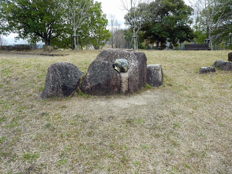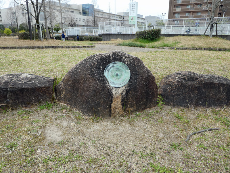 JR祝園駅から西方へ出発し約8分で南北に走る山手幹線に出ました、山手幹線を越えた右の角に精華町役場があります。我々はここで方向を左に向け南へ向けて山手幹線に沿って、なだらかな登りをどんどん進め「畑ノ前公園」の少し手前の「コンビニ」で、お約束通り昼食を買って貰う為5分程度の時間を割きました。そして、すぐ隣の「畑ノ前公園遺跡の杜」石碑が右手に見えると公園の中に入り一斉に一次休憩に入りました。この公園の休憩広場にある石碑には「壺の形した物」や「壺に敷くお皿の形した物」や「尺八に似た物」が埋め込まれていました。(上記写真参照)それに気付いてからは、その石碑に腰掛けたりするのが悪いようで、何となく見るだけになりました。「畑ノ前公園」を出発すると方向を右に向け西の方に向います。やはりなだらかな登りが、そのまま「けいはんな記念公園」まで続きますが、道は広く歩き易く出来ていました。大阪も京都の精華町を見習って欲しいと思いました。