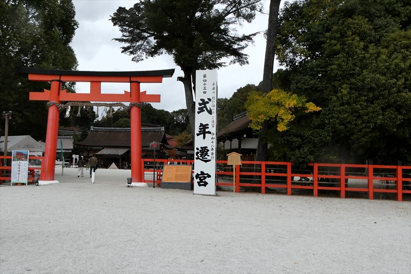 2026年最初の例会(初詣)の下見です。集合場所は、おなじみの京阪・出町駅近くの「京都府立鴨川公園 葵地区(葵公園)」です。「糺の森」を通って、「下鴨神社」(賀茂御祖神社)に行きました。鳥居を通り、参道が長くなかなか「下鴨神社」に到着しません。下鴨神社は、21年ごとに遷宮を行います。 次は、 令和18年(2036年)の第35回式年遷宮があるそうです。遷宮後にまた来たいものです。