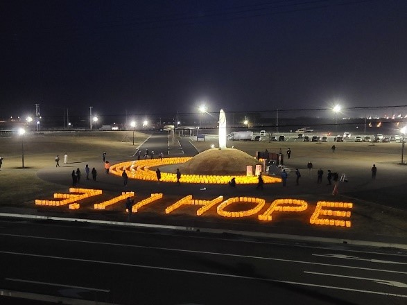 3.11震災伝承のため、絵灯篭による追悼を行います。名取市閖上震災メモリアル公園に約1,100基の絵灯篭を設置します。