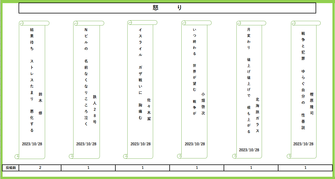 2023.11.9 お役立ち情報, 内容紹介 どさんこ文芸館 川柳の部 2023年度A-12 クリックしますと拡大します。 20231028情報交換会作品 内容紹介のページに戻ります 投稿者: harada お役立ち情報, 内容紹介 コメント: 0