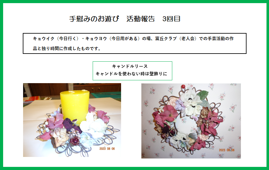 2023.11.10 お役立ち情報, 内容紹介 どさんこ文芸館 手慰みのお遊び 3 ・写真をクリックすると拡大表示になります。 作品 1 作品 2 作品 3 作品 4 投稿者:吉岡会員 の作品です。 内容紹介のページに戻ります。 投稿者: harada お役立ち情報, 内容紹介 コメント: 1