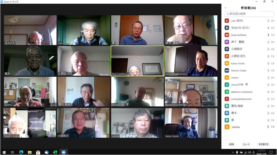 ■ 令和2年11月度「北のEとも」定例オンライン講座の概要 参加者数:16名