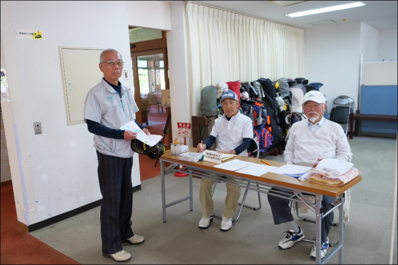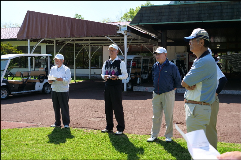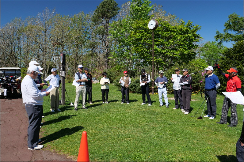 コンペ当日は、7月の気温となり心地良い暑さと晴天、微風という絶好のコンディションとなり、本年第1回の例会を実施、参加人員21名6組が3組づつの2Wayスタートでほぼ定刻に競技を開始しました。好コンディションと平坦で広いコースに恵まれ、NET8アンダーパーをトップに計7名のアンダーが出る好成績の結果でした。 結果は以下の通りです。
