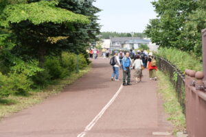 JR北広島駅からエルフィンロードを通り北広島市市役所展望デッキ経由で片道2.5Km 程度です。